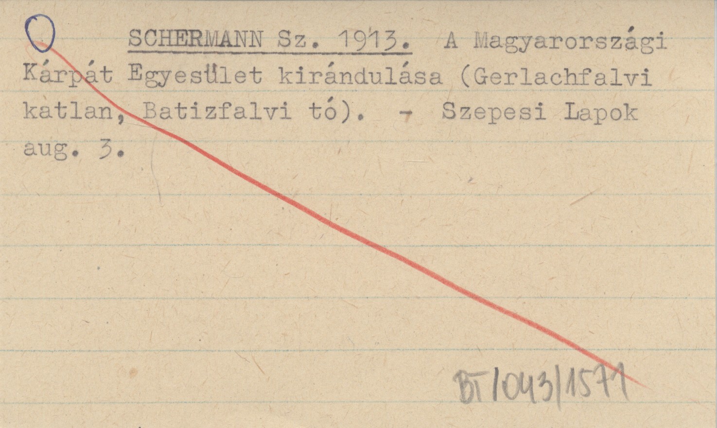 SCHERMANN Sz. 1913 A Magyarországi Kárpát Egyesület kirándulása (Gerlachfalvi katlan, Batizfalvi tó).