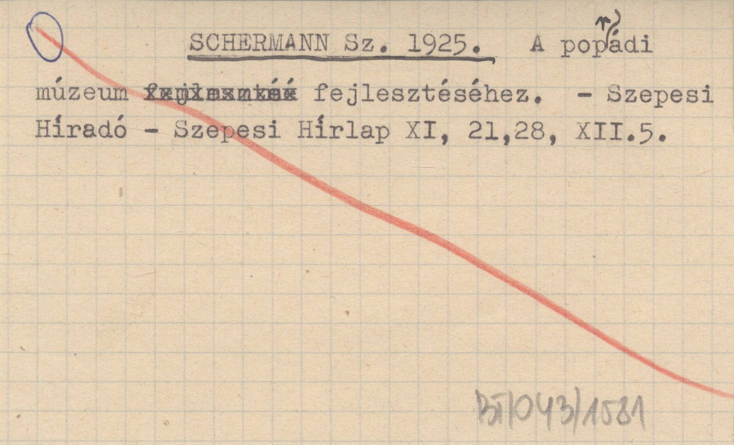 SCHERMANN Sz. 1925 A poprádi múzeum fejlesztéséhez.