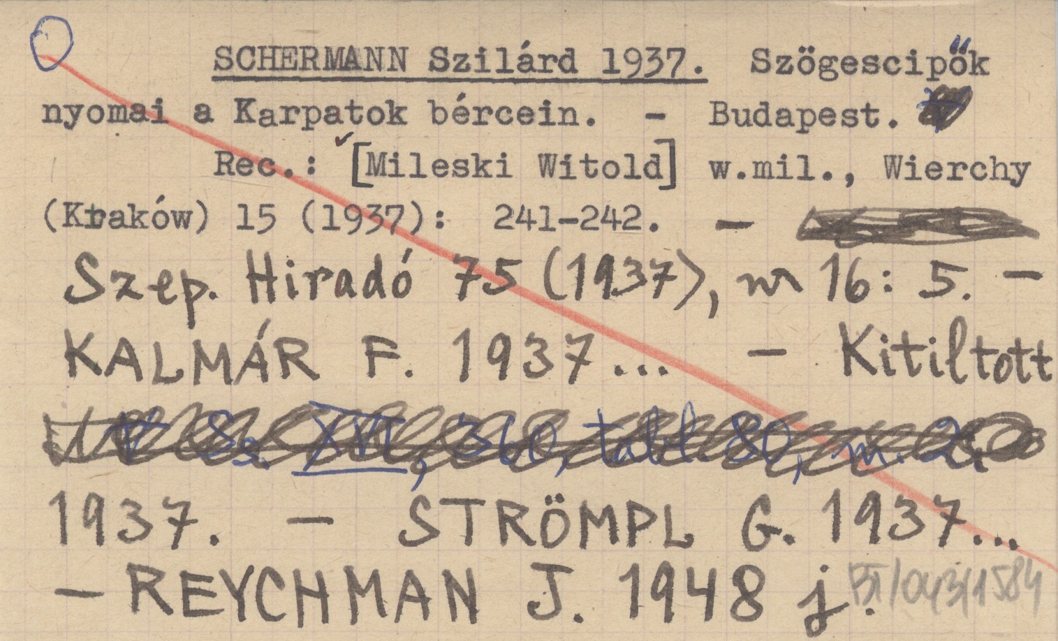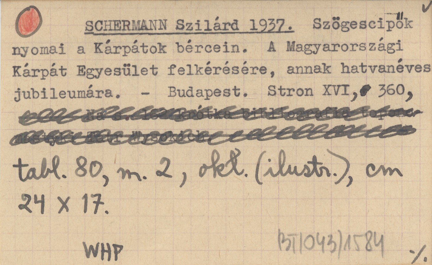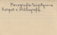 Budapest , XVI s., 360 s., 80 k. tabl., 2 m., okł. (il.), 24x17 cm. Monografia turystyczna Karpat z bibliografi±. REC: [MILESKI Witold] w.mil., Wierchy (Kraków) 15 (1937): 241-242 ; Szep. Hiradó 75 (1937), nr 16: 5 ; KALMÁR F. 1937... ; Kitiltott 1937 ; STRÖMPL G. 1937... ; REYCHMAN J. 1948 j ;