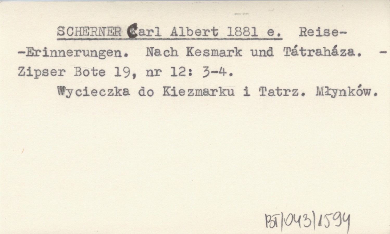 SCHERNER Carl Albert 1881 e Reise-Erinnerungen. Nach Kesmark und Tátraháza.