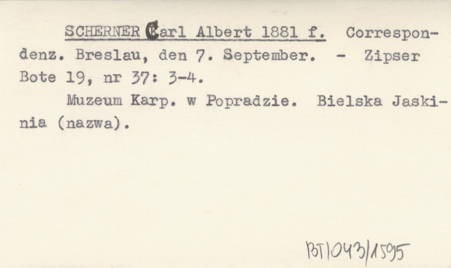 SCHERNER Carl Albert 1881 f Correspondenz. Breslau, den 7. September.