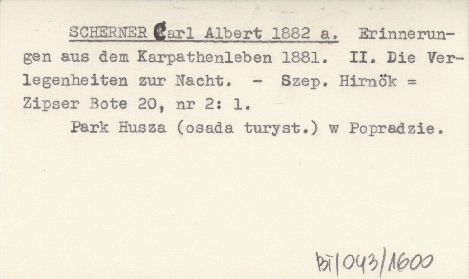 SCHERNER Carl Albert 1882 a Erinnerungen aus dem Karpathenleben 1881. II. Die Verlegenheiten zur Nacht.