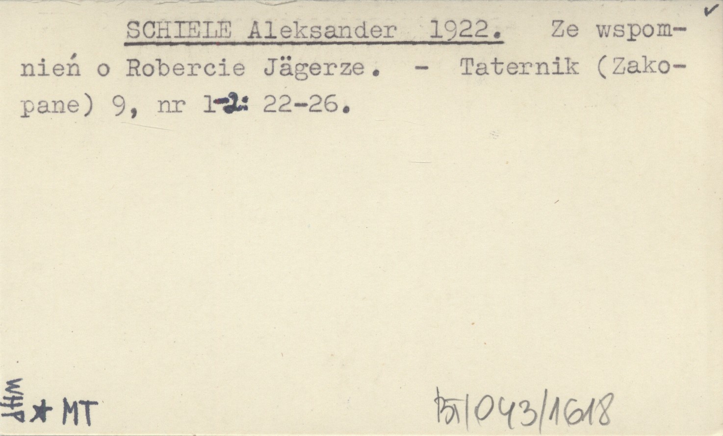SCHIELE Aleksander 1922 Ze wspomnień o Robercie Jägerze.