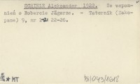 SCHIELE Aleksander 1922 Ze wspomnień o Robercie Jägerze.