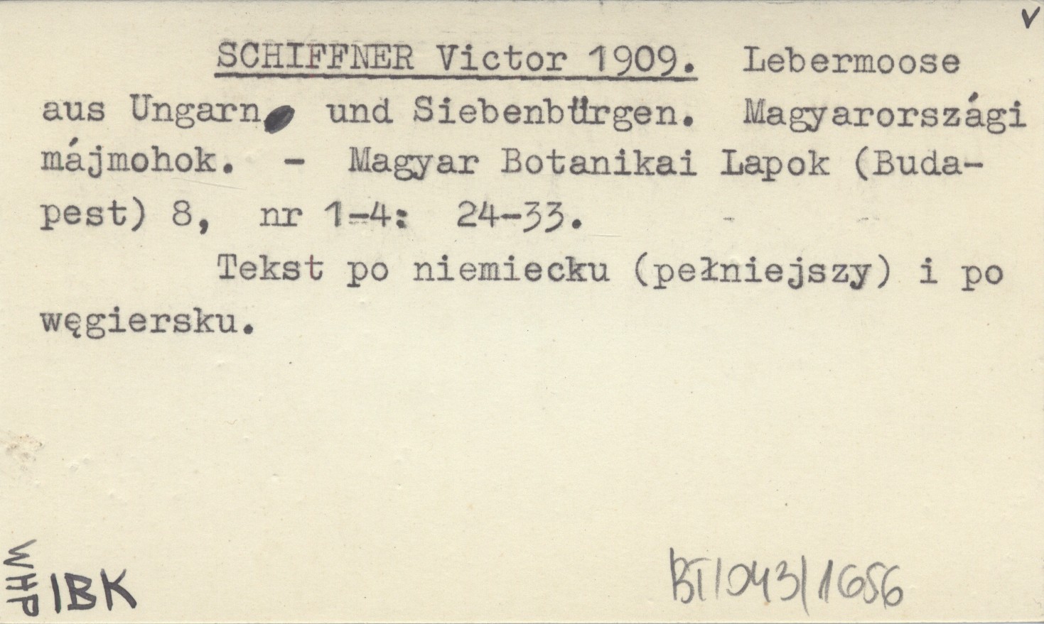 SCHIFFNER Victor 1909 Lebermoose aus Ungarn und Siebenbürgen. Magyarországi májmohok.