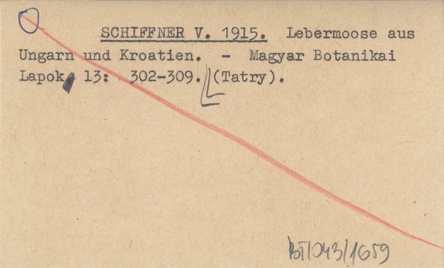 SCHIFFNER V. 1915 Lebermoose aus Ungarn und Kroatien.
