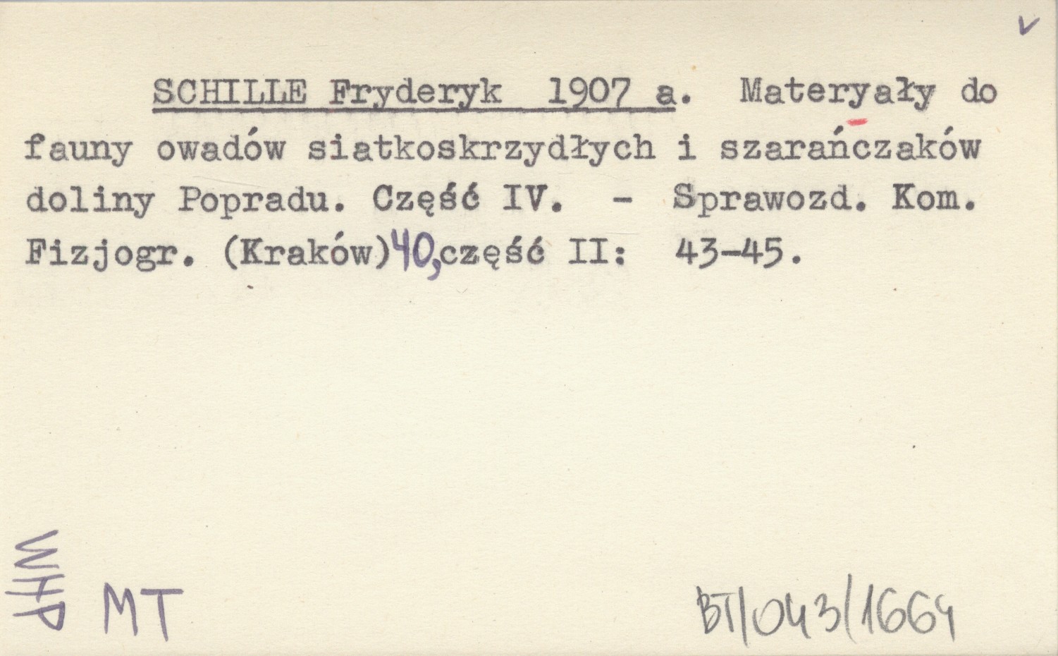 SCHILLE Fryderyk 1907 a Materyały do fauny owadów siatkoskrzydłych i szarańczaków doliny Popradu. Część IV.