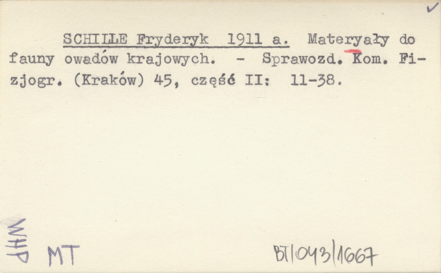 SCHILLE Fryderyk 1911 a Materyały do fauny owadów krajowych.