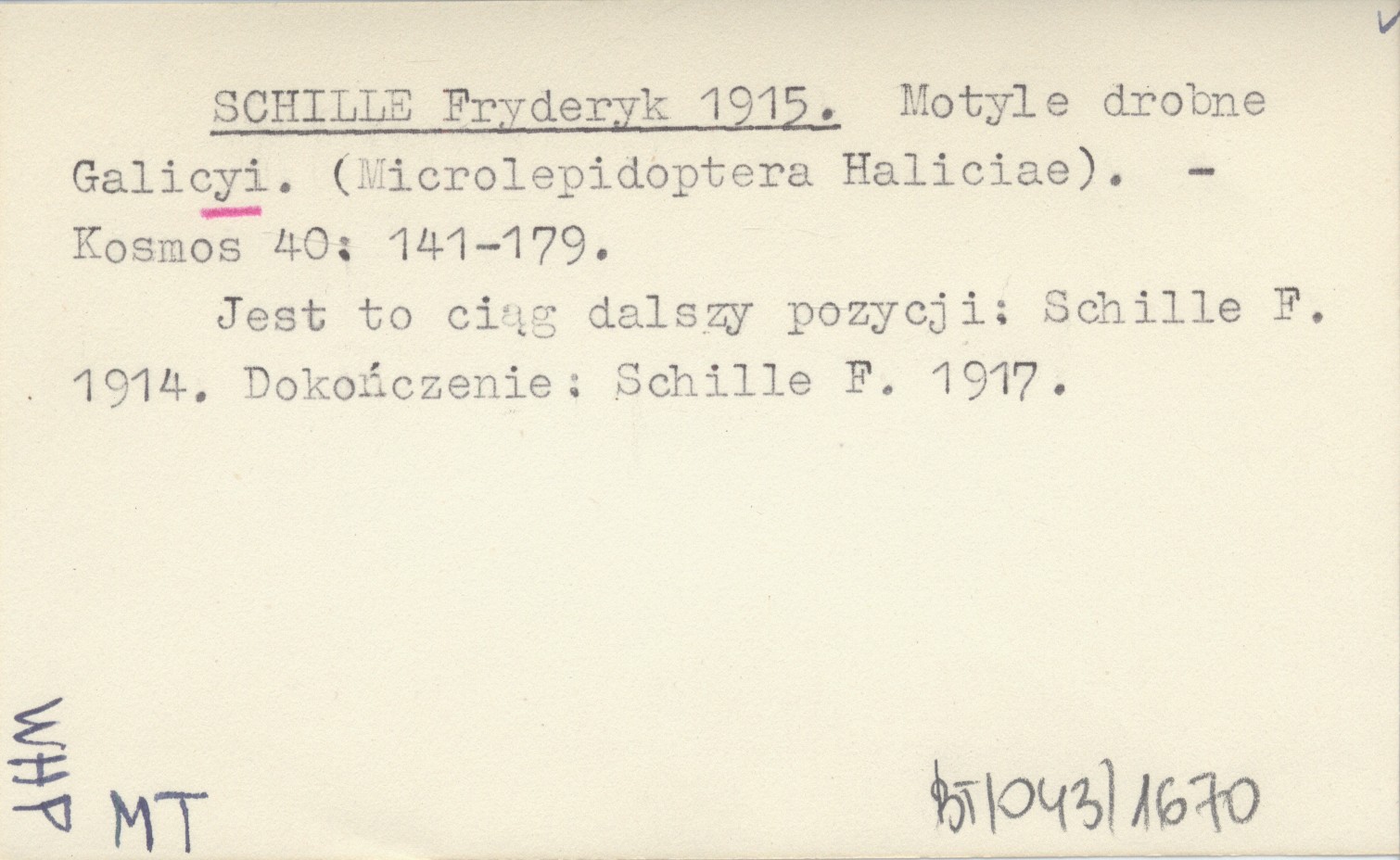 SCHILLE Fryderyk 1915 Motyle drobne Galicyi. (Microlepidoptera Haliciae).