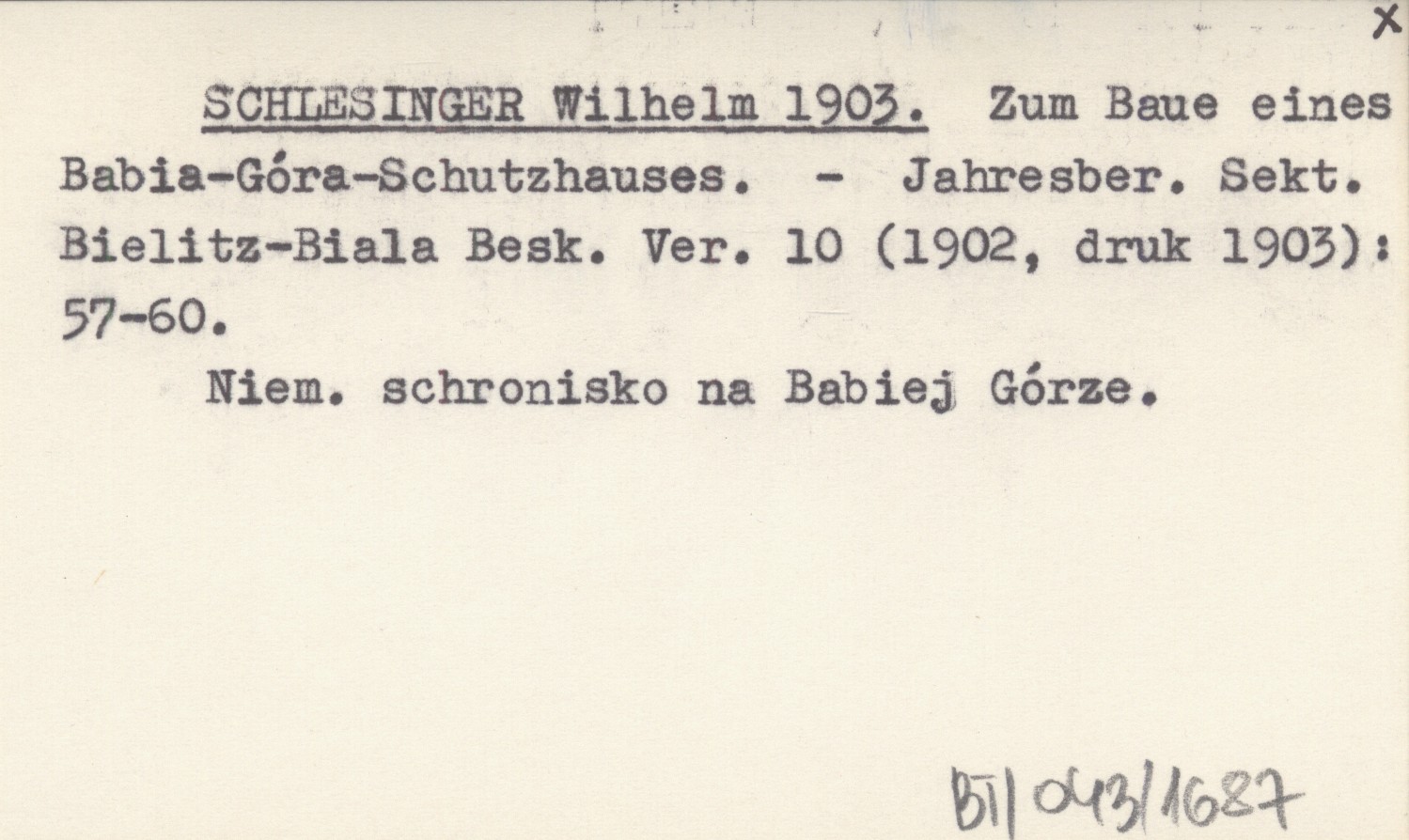 Jahresber. Sektion Bielitz-Biala Beskiden Vereines, 10 (1902, druk 1903): 57-60. Niem. schronisko na Babiej Górze.