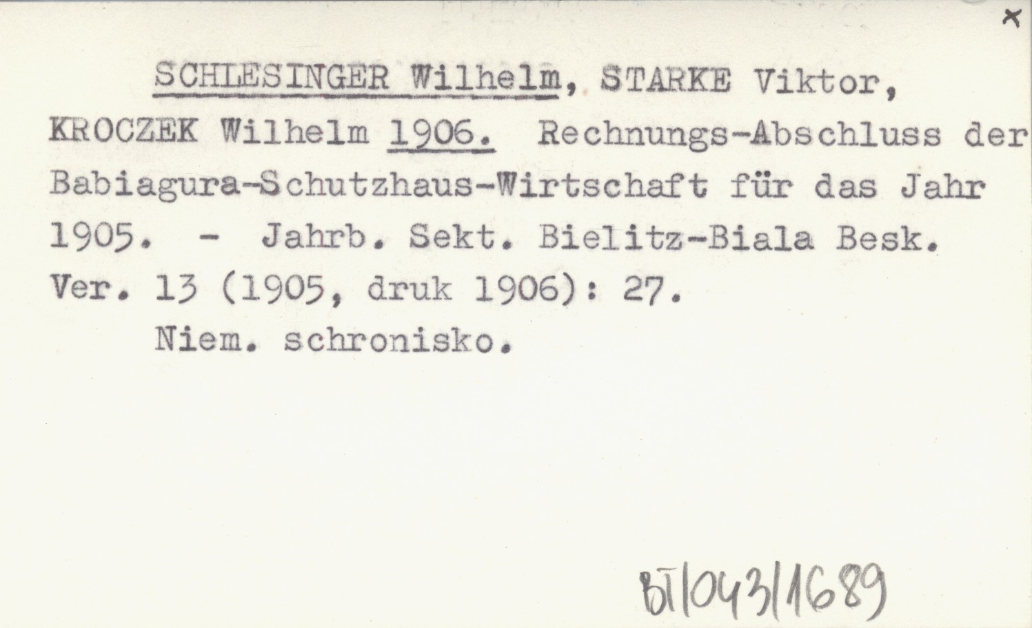 Jahrb. Sektion Bielitz-Biala Beskiden Vereines, 13 (1905, druk 1906): 27.
