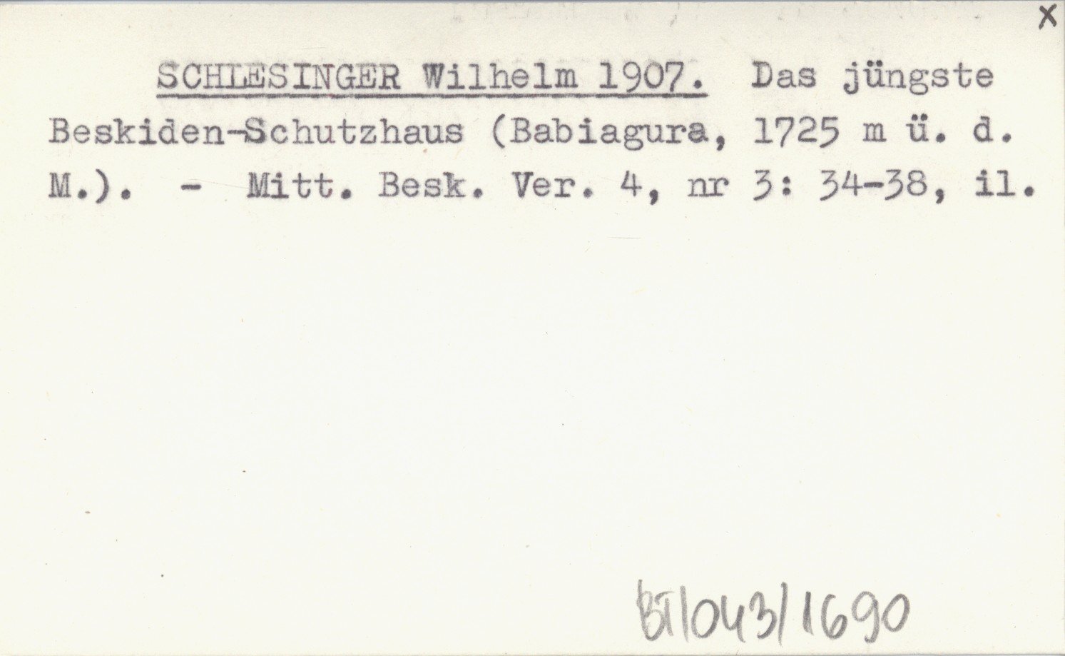 SCHLESINGER Wilhelm 1907 Das jüngste Beskiden-Schutzhaus (Babiagura, 1725 m ü. d. M.).