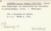 SCHLÖZER August Ludwig 1795-1797 Kritische Sammlungen zur Geschichte der Deutschen in Siebenbürgen. I-III.