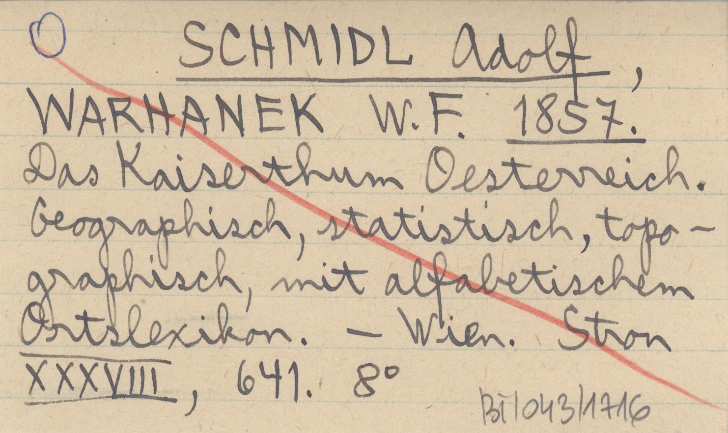 SCHMIDL Adolf WARHANEK, W. F. ; 1857 Das Kaiserthum Oesterreich. Geographisch, statistisch, topographisch, mit alfabetischem Ortslexikon.