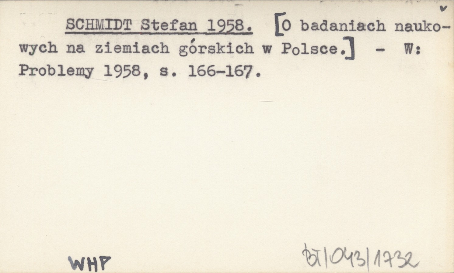 SCHMIDT Stefan 1958 [O badaniach naukowych na ziemiach górskich w Polsce].