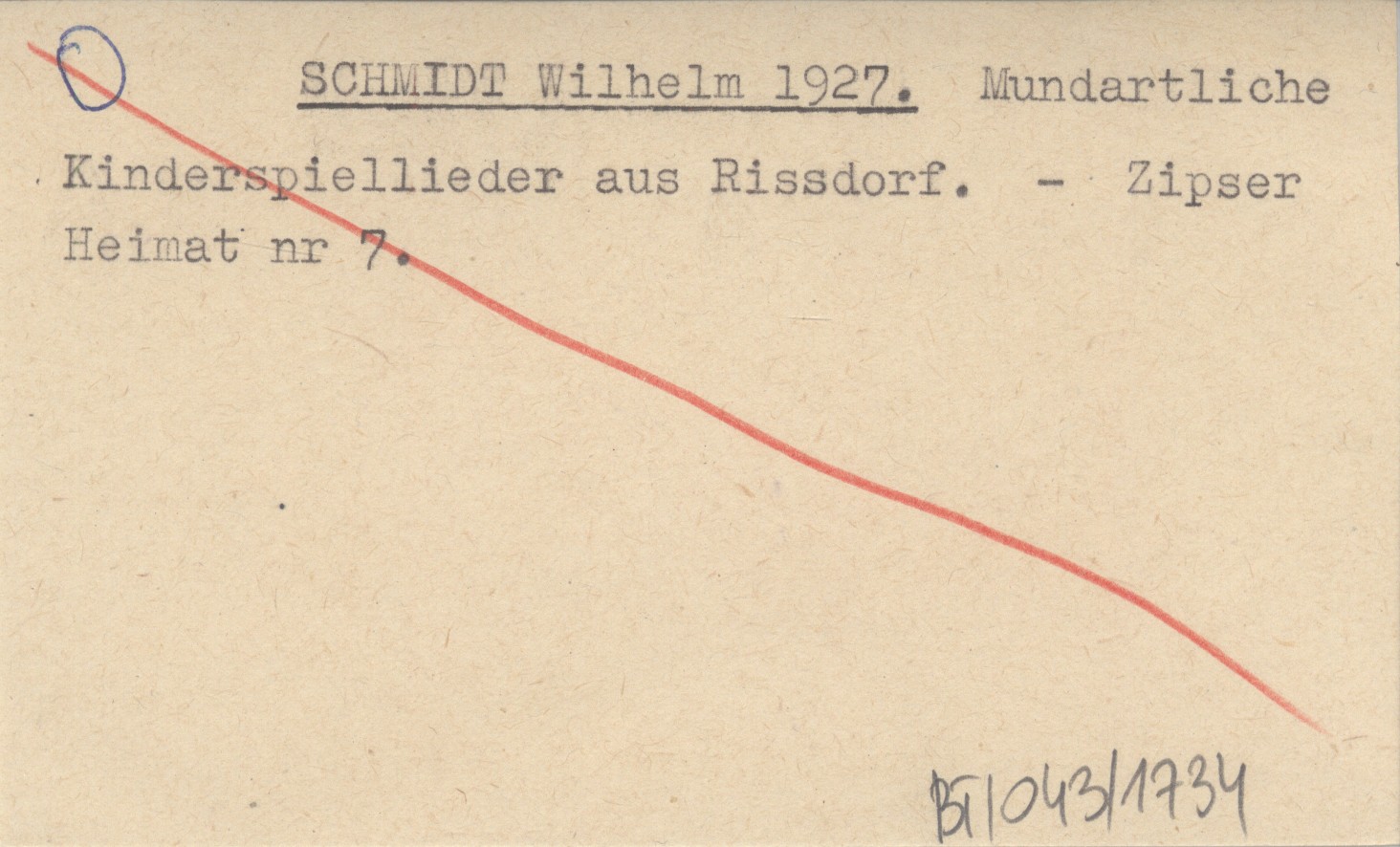SCHMIDT Wilhelm 1927 Mundartliche Kinderspiellieder aus Rissdorf.
