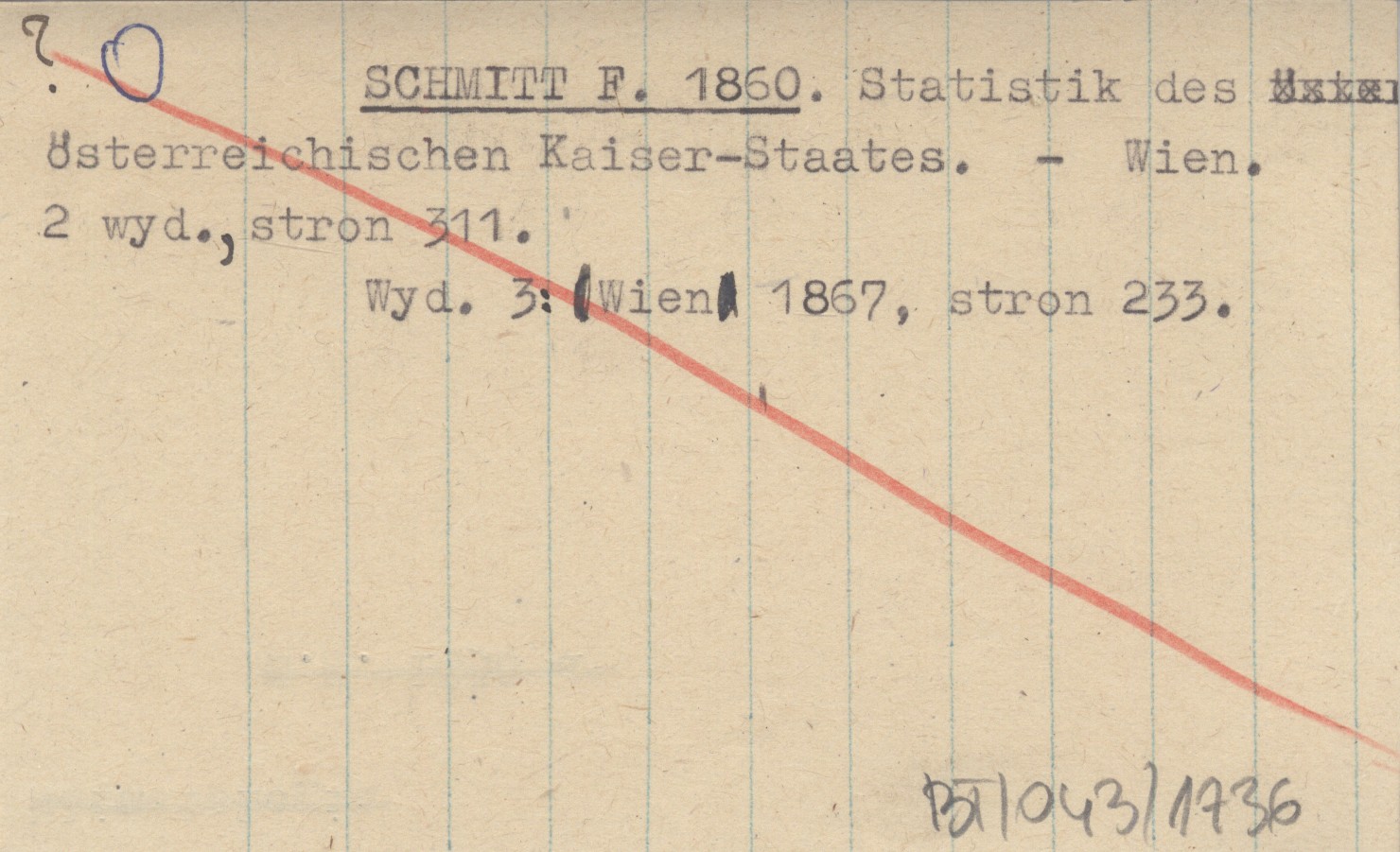 SCHMITT F. 1860 Statistik des österreichischen Kaiser-Staates.