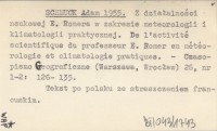 SCHMUCK Adam 1955 Z działalności naukowej E. Romera w zakresie meteorologii i klimatologii praktycznej. De l'activité scientifique du professeur E. Romer en météorologie et climatologie pratiques.