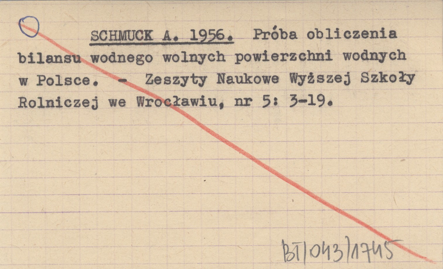 SCHMUCK A. 1956 Próba obliczenia bilansu wodnego wolnych powierzchni wodnych w Polsce.