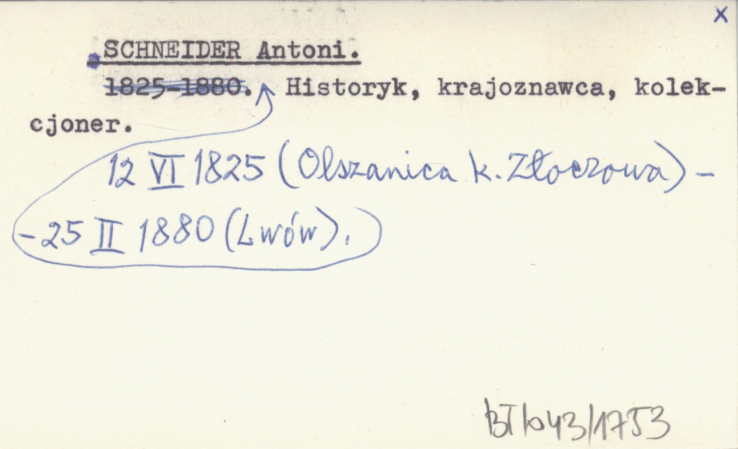 12 VI 1825 (Olszanica k. Złoczowa) - 25 II 1880 (Lwów). Historyk, krajoznawca, kolekcjoner.