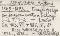 SCHNEIDER Antoni 1868-1873... Encyklopedya do krajoznawstwa Galicyi [...]. T. 1-2.