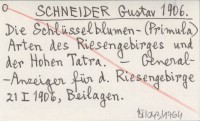 SCHNEIDER Gustav 1906 Die Schlüsselblumen-(Primula) Arten des Riesengebirges und der Hohen Tatra.