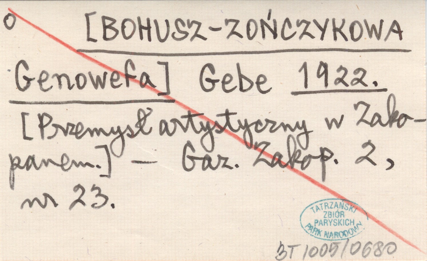 Gebe [BOHUSZ-ZOŃCZYKOWA Genowefa] 1922 [Przemysł artystyczny w Zakopanem.].