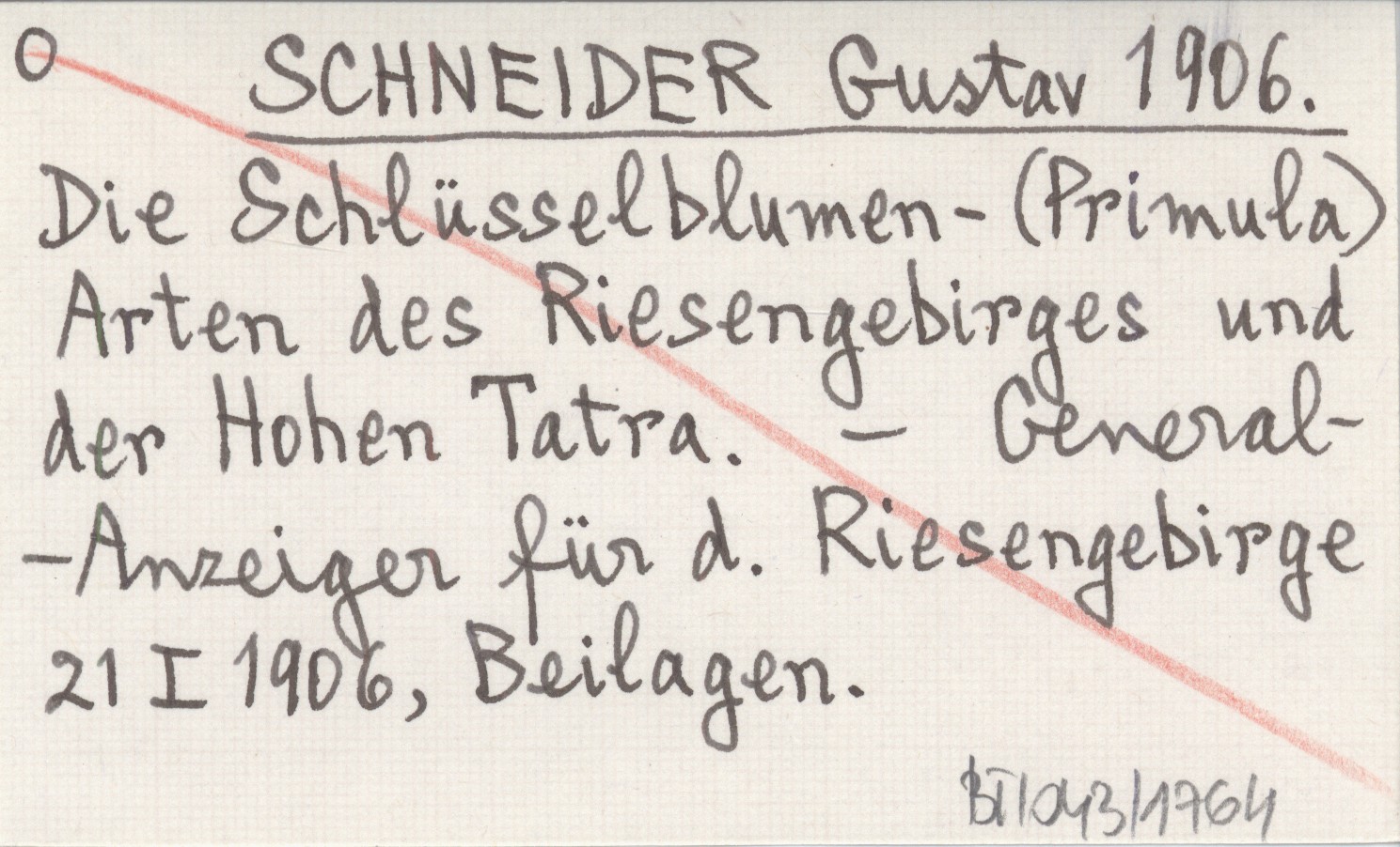 SCHNEIDER Gustav 1906 Die Schlüsselblumen-(Primula) Arten des Riesengebirges und der Hohen Tatra.