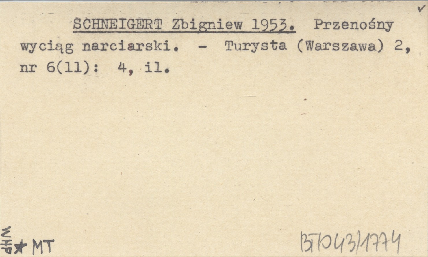 SCHNEIGERT Zbigniew 1953 Przenośny wyciąg narciarski.