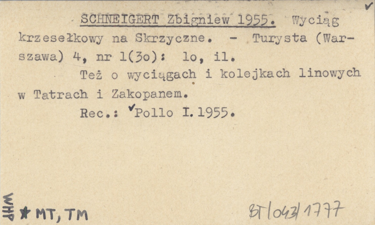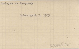 Turysta (Warszawa) , 4, nr 1 (30): 10, il. Też o wyciągach i kolejkach linowych w Tatrach i Zakopanem. REC: Pollo I. 1955.