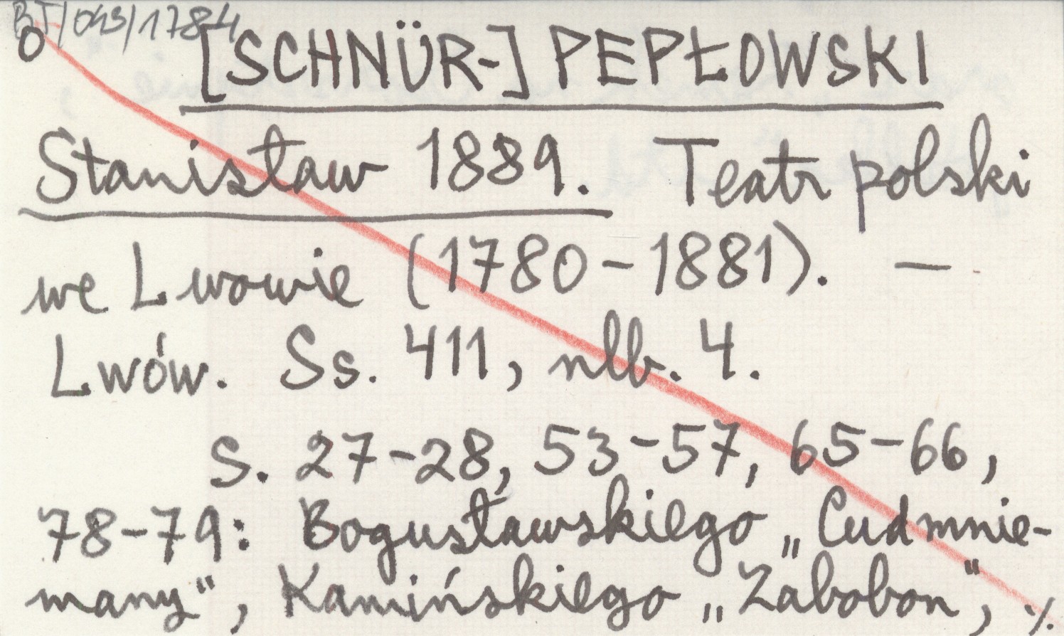 [SCHNÜR-] PEPŁOWSKI Stanisław 1889 Teatr polski we Lwowie (1780-1881).