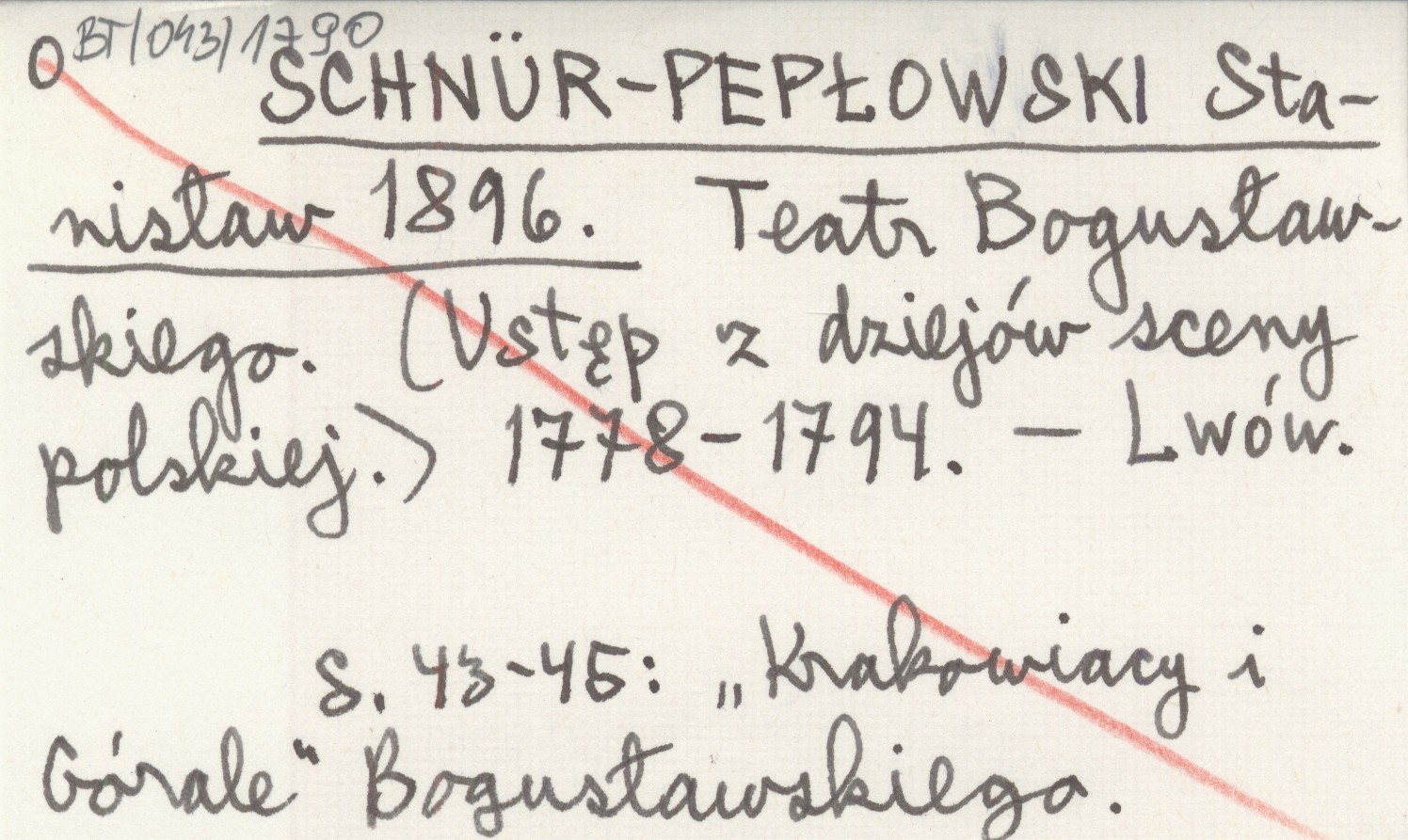 SCHNÜR-PEPŁOWSKI Stanisław 1896 Teatr Bogusławskiego. (Ustęp z dziejów sceny polskiej). 1778-1794.