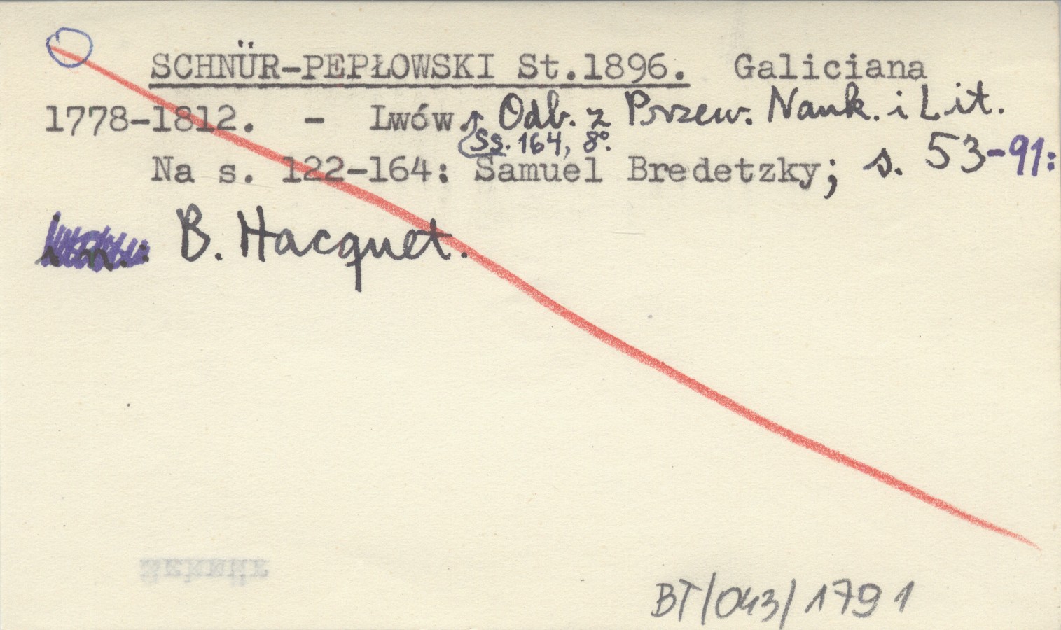 Lwów , 164 s., 8°. Na s. 122-164: Samuel Bredetzky; s. 53-91: B. Hacquet. Odbitka z Przewodnika Naukowego i Literackiego.