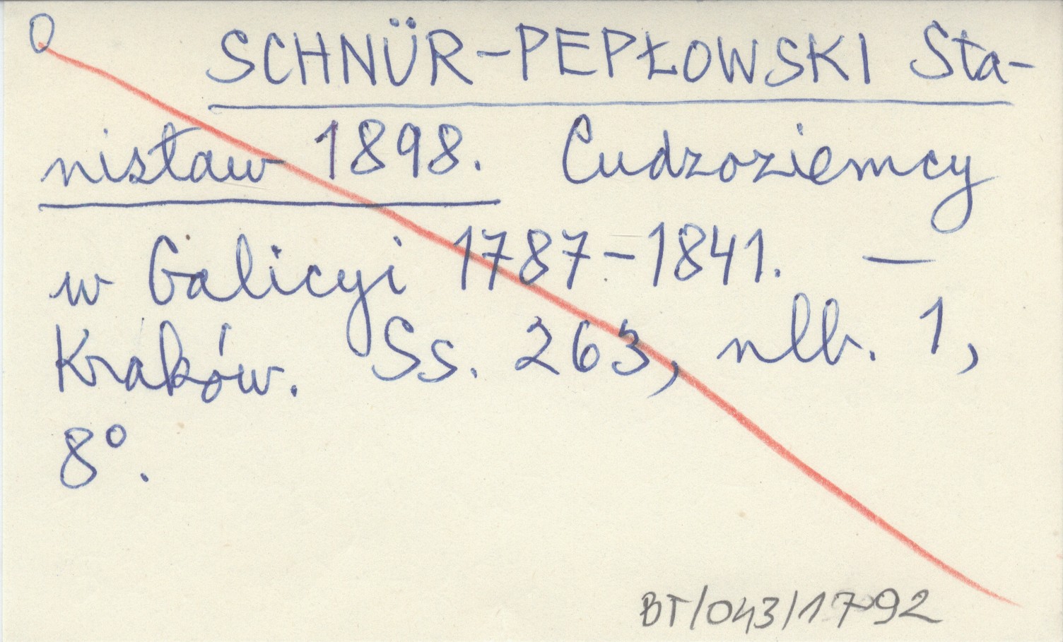 SCHNÜR-PEPŁOWSKI Stanisław 1898 Cudzoziemcy w Galicyi 1787-1841.