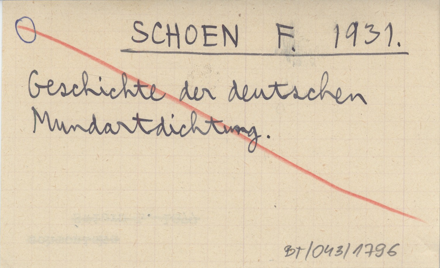 SCHOEN F. 1931 Geschichte der deutschen Mundartdichtung.