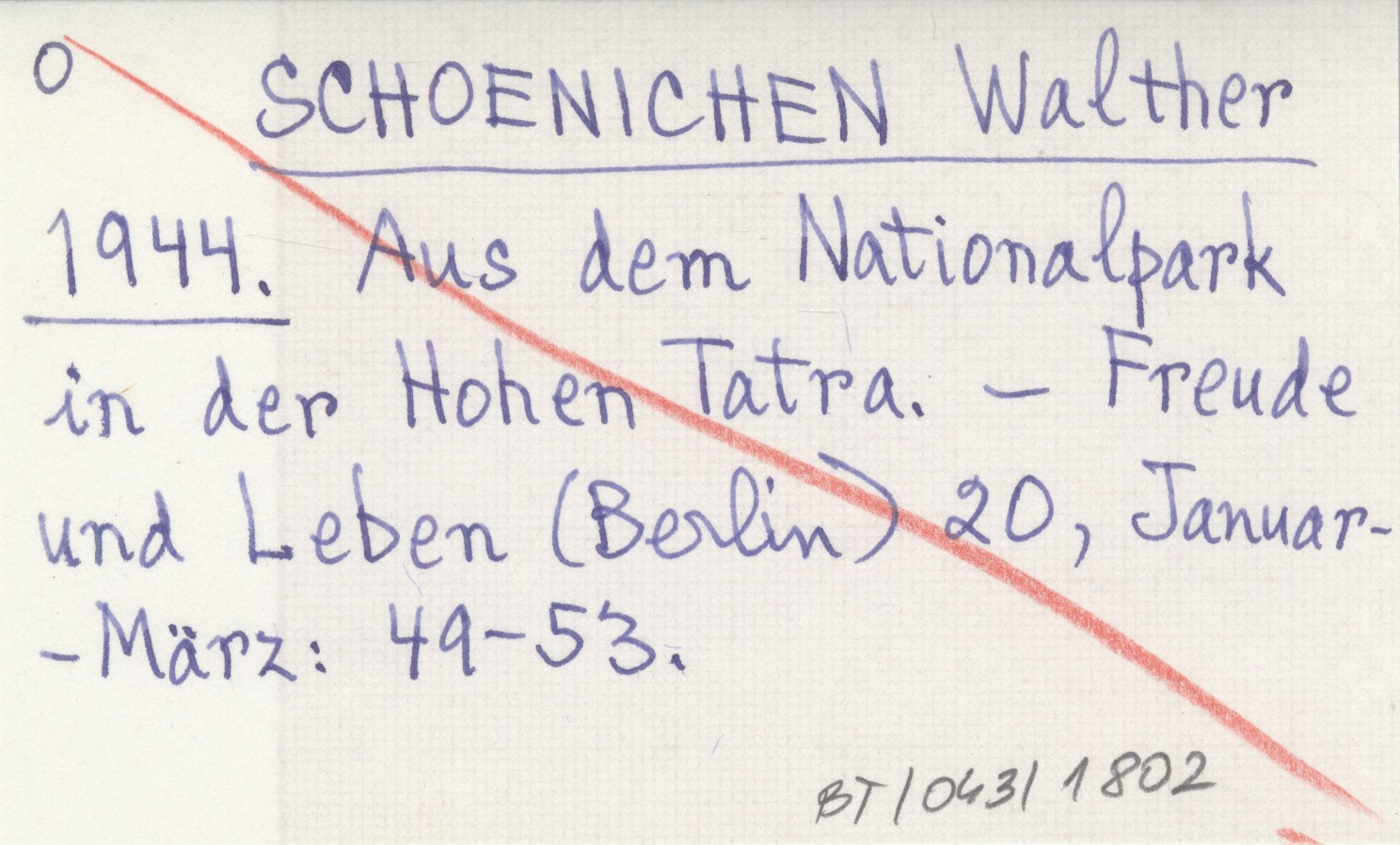 SCHOENICHEN Walther 1944 Aus dem Nationalpark in der Hohen Tatra.