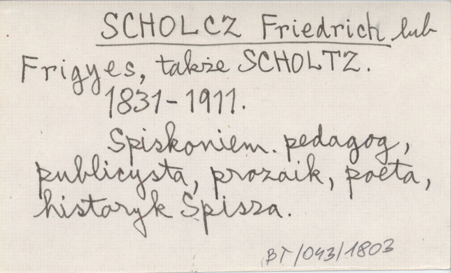 1831-1911. Spiskoniemiecki pedagog, publicysta, prozaik, poeta, historyk Spisza.