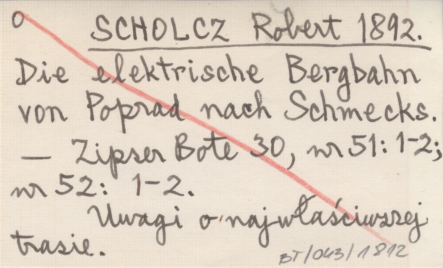 Zipser Bote, 30, nr 51: 1-2; nr 52: 1-2. Uwagi o najwłaściwszej trasie.