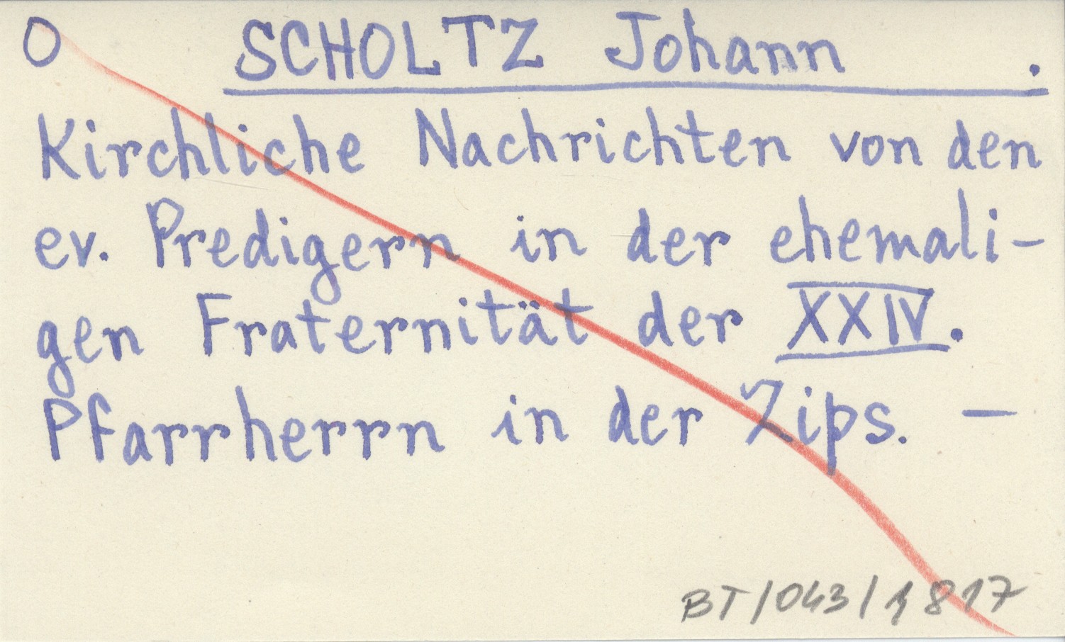 SCHOLTZ Johann Kirchliche Nachrichten von den ev. Predigern in der ehemaligen Fraternität der XXIV. Pfarrherrn in der Zips.