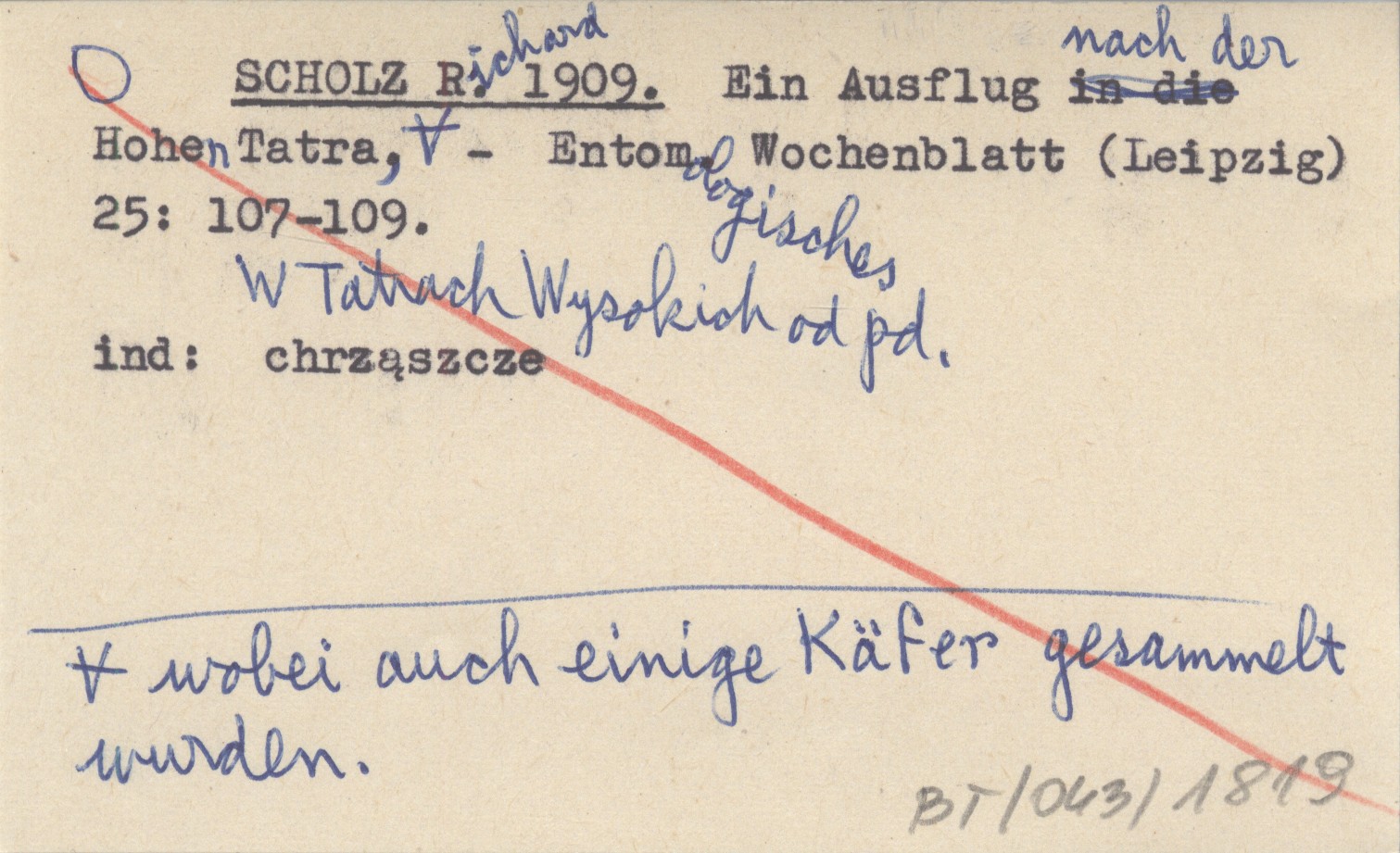 SCHOLZ Richard 1909 Ein Ausflug nach der Hohen Tatra, wobei auch einige Käfer gesammelt wurden.