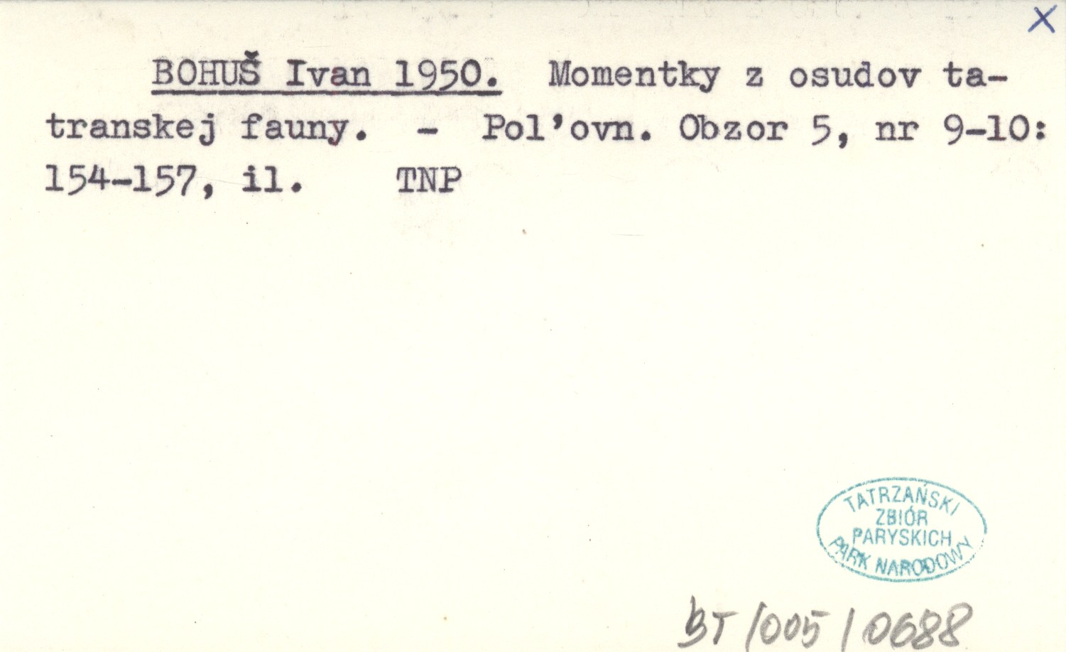 BOHUŠ Ivan 1950 Momentky z osudov tatranskej fauny.