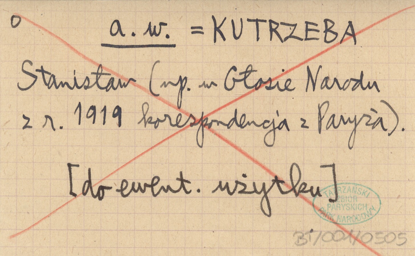 a. w. KUTRZEBA Stanisław (np. w Głosie Narodu z r. 1919 korespondencja z Paryża). [do ewent. użytku]