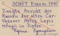 SCHÖT Erazm 1790 Zweÿte Ansicht der Ruinen der alten Cartheuser Abteÿ Lapis refugii in Zipsen.