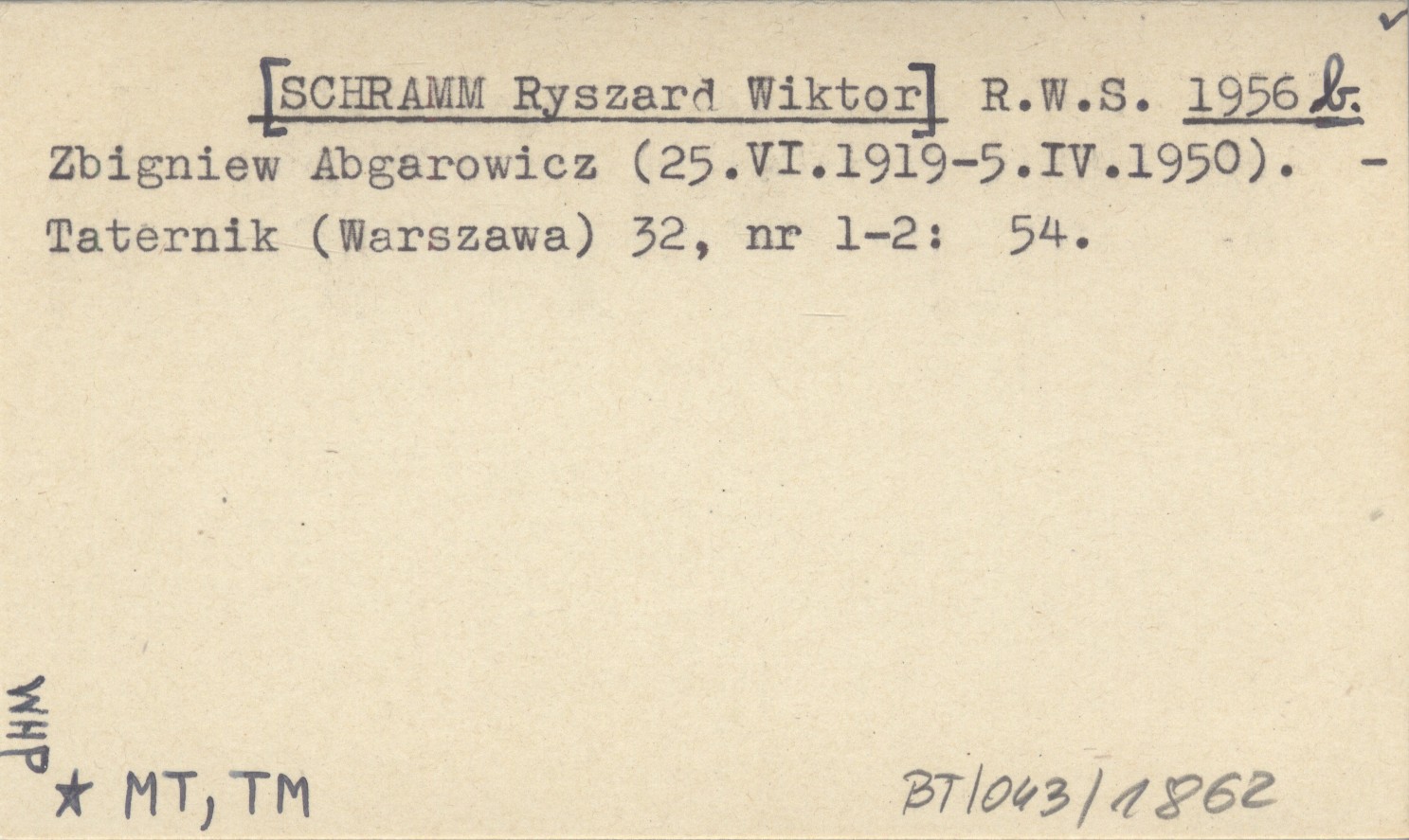 R.W.S. [SCHRAMM Ryszard Wiktor] 1956 b Zbigniew Abgarowicz (25.VI.1919-5.IV.1950).