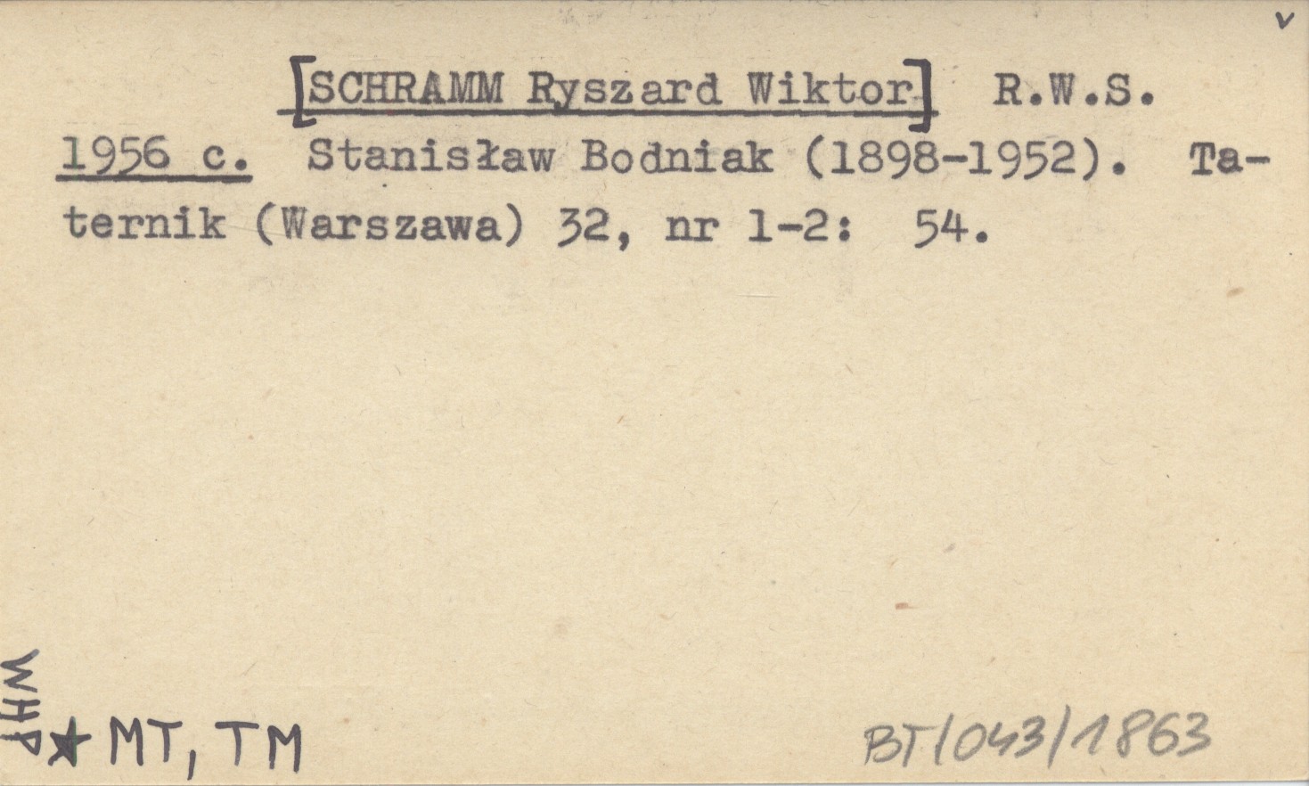 R.W.S. [SCHRAMM Ryszard Wiktor] 1956 c Stanisław Bodniak (1898-1952).