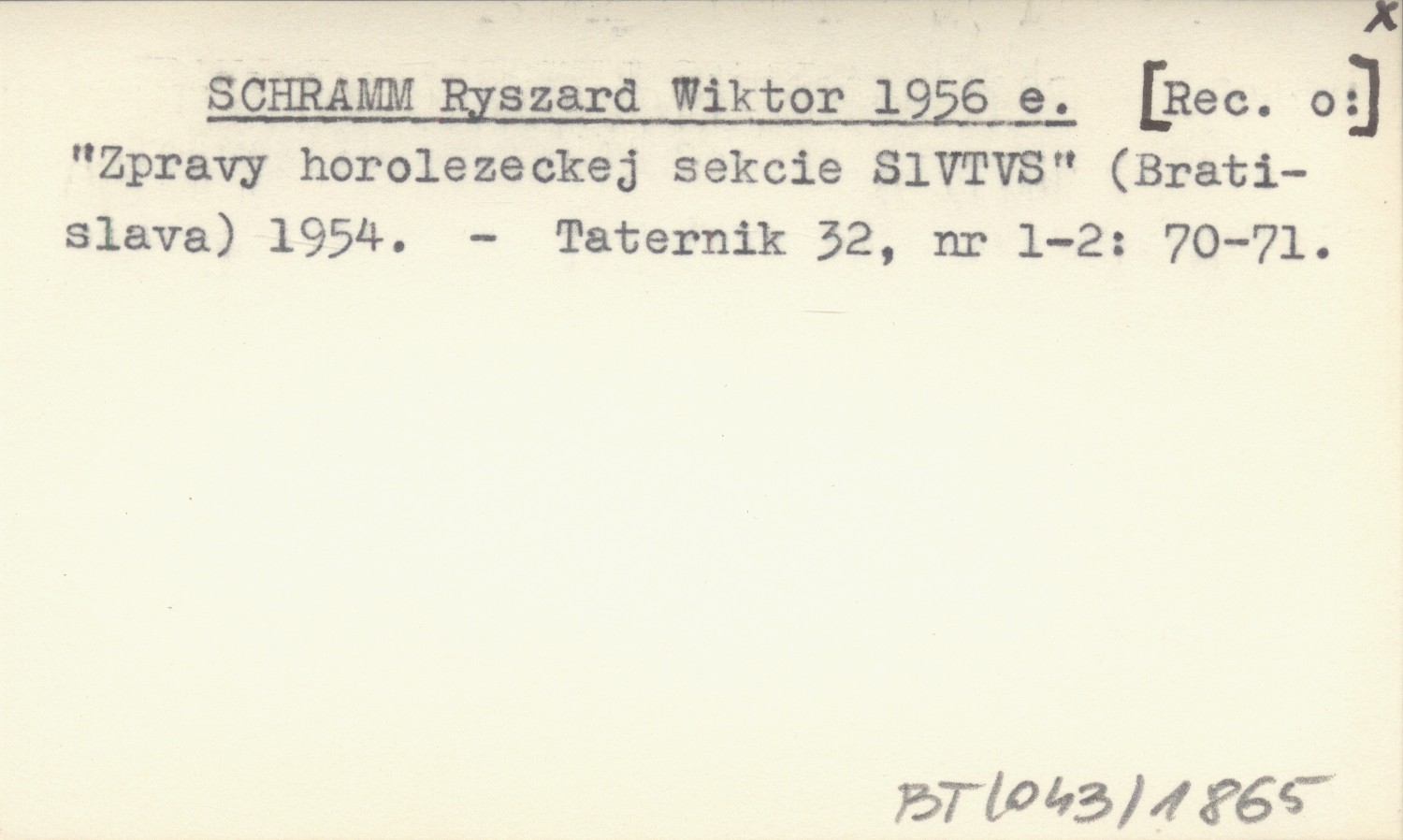 SCHRAMM Ryszard Wiktor 1956 e "Zpravy horolezeckiej sekcie S1VTVS" (Bratislava) 1954.