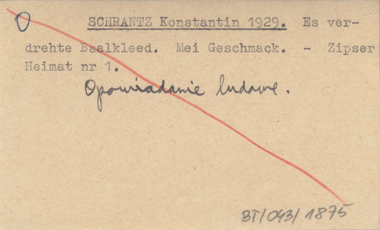 SCHRANTZ Konstantin 1929 Es verdrehte Baalkleed. Mei Geschmack.