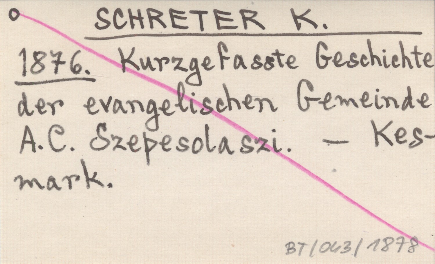SCHRETER K. 1876 Kurzgefasste Geschichte der evangelischen Gemeinde A.C. Szepesolaszi.