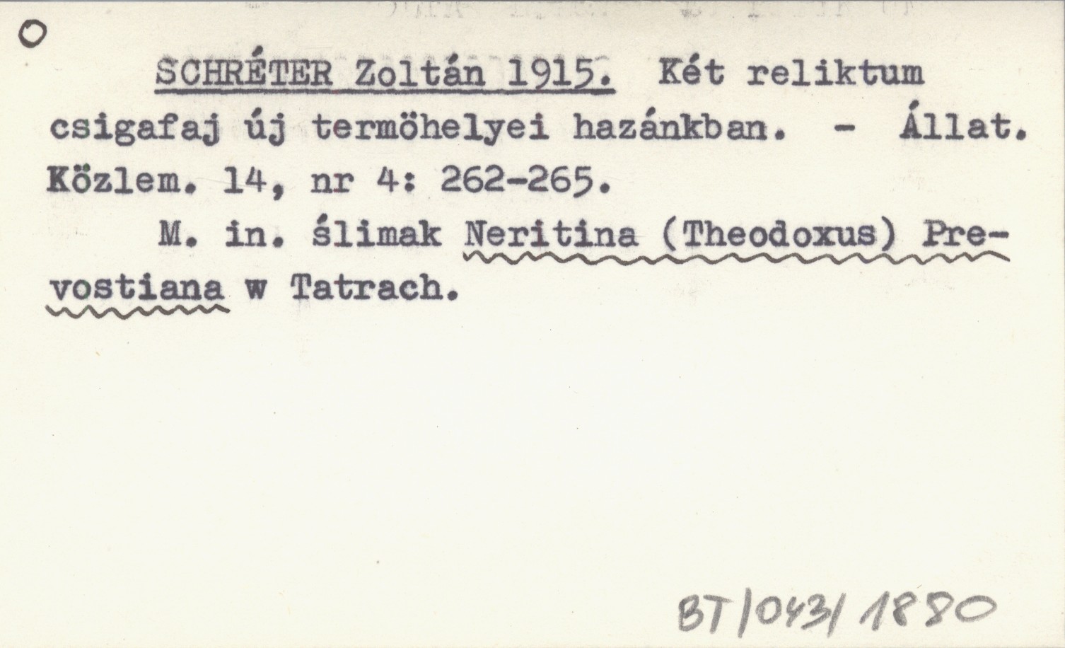 SCHRÉTER Zoltán 1915 Két reliktum csigafaj új termöhelyei hazánkban.