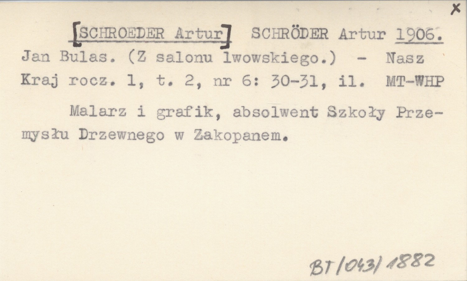 SCHRÖDER Artur [SCHROEDER Artur] 1906 Jan Bulas. (Z salonu lwowskiego).